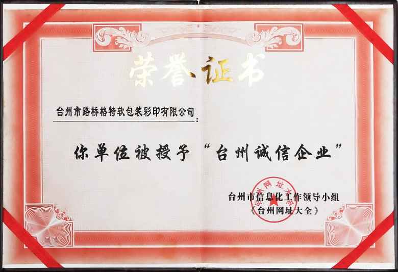 公司已有10多年的生产历史和经验,是台州市指定印制商标的单位,拥有600型、1100型、8800型八色全电脑凹印机,j2108胶印机,1740胶印机,500/800型电脑热切机,复合机,三边封及全套制袋设备,专印各种食品,服装,工艺品,文化用品.塑料制品,塑料袋及热转印膜,专印纸,商标/纸张印刷,等业务。 本公司产品远销国内外,得到客户的 一致好评,并可以按客户的需求设计生产,人无信不立,企业无信不强.公司将坚持"以诚取信,以优质服务感人的经营理念,努力营造诚信的氛围,与新老客户共同描绘格特美好蓝图。